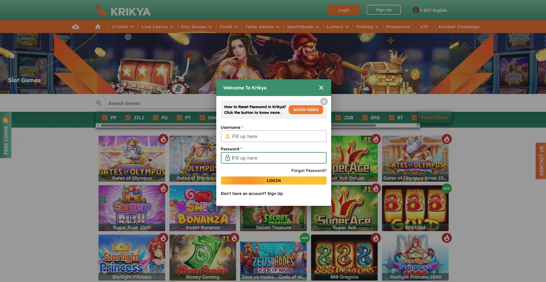 Krikya Login: Games overview